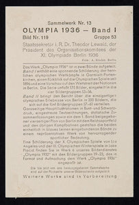 Period Paper is pleased to offer a collection of original halftone and color prints from the 1936 IV Olympic Winter Games in the town of Garmisch-Partenkirchen in Bavaria, Germany and the Games of the XI Olympiad (the 1936 Olympic Summer Games) in Berlin. These images have an accompanying description on the reverse, please scroll down to see the reverse. The prints were all hand tipped-in and may have some glue damage on the reverse of the image from the removal process.