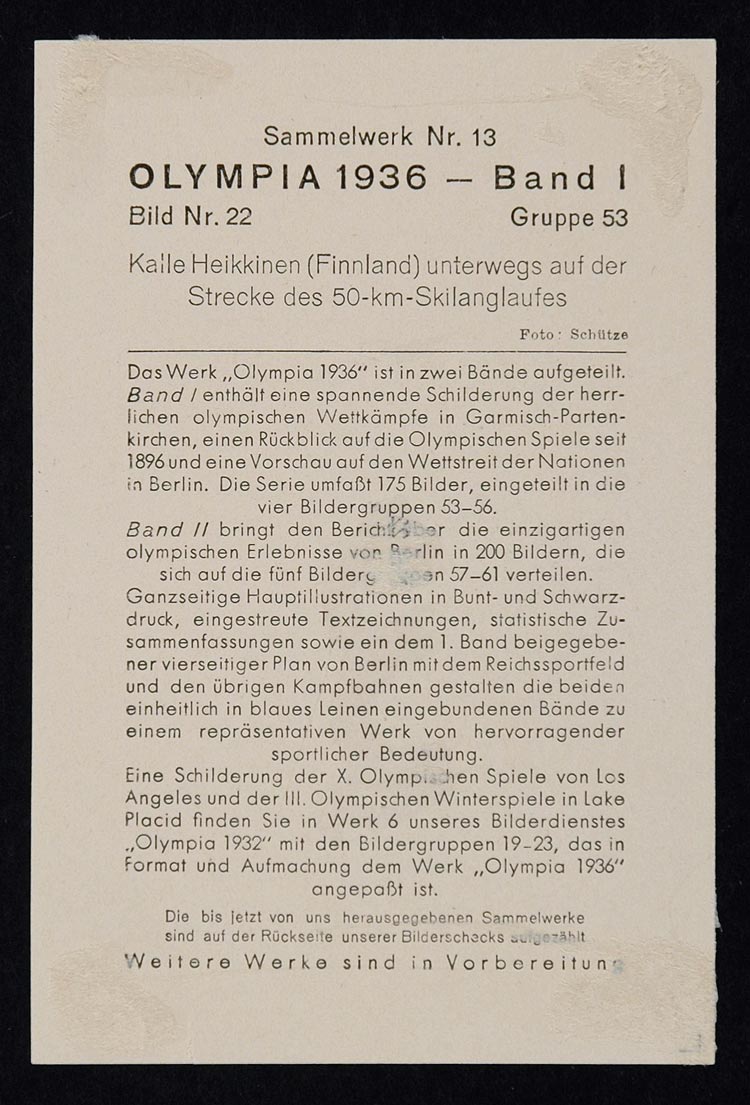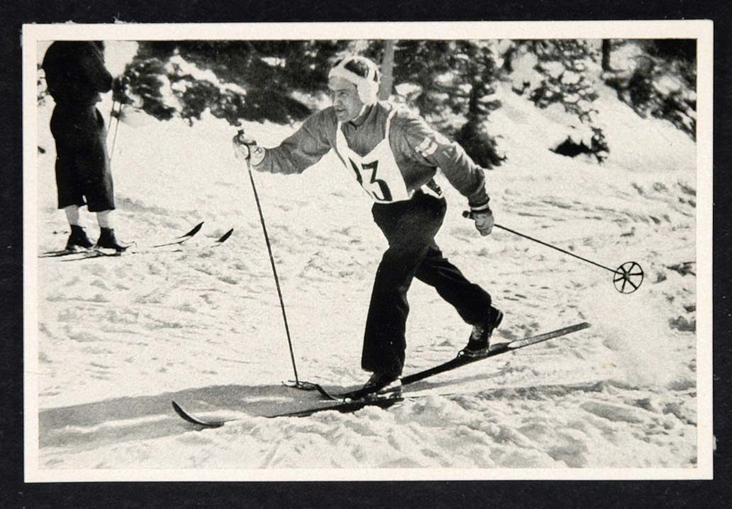 This is an original 1936 halftone print of Kalle Heikkinen of Finland in the 50 km cross-country ski race at the IV Olympic Winter Games.