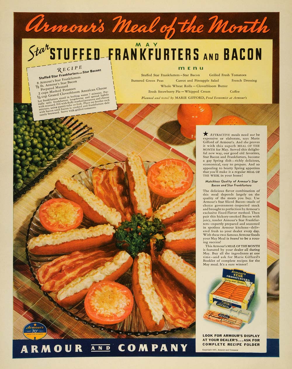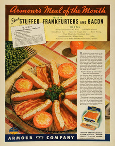 1937 Ad Armour Meat Stuffed Frankfurters Bacon Recipe - ORIGINAL MCC5