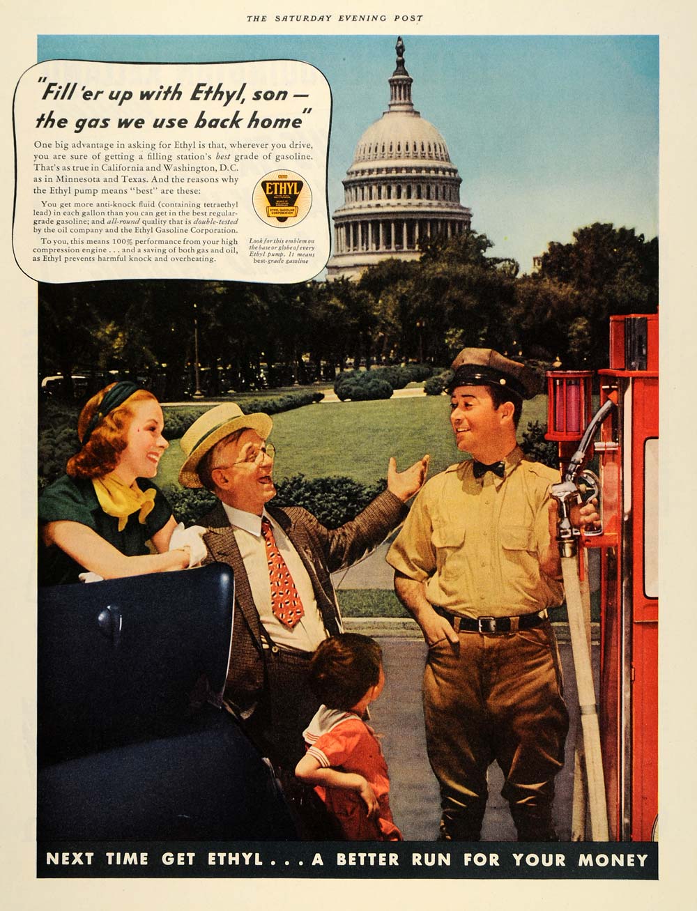 This is an original 1937 color print ad for Ethyl Gasoline by the Ethyl Gasoline Corporation located in New York City, New York.