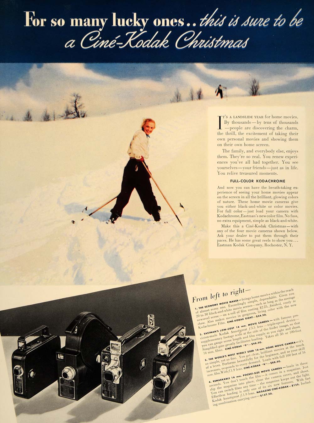 1937 Ad Cine Kodak Home Movie Camera Kodachrome Skier - ORIGINAL ADVERTISING FT8