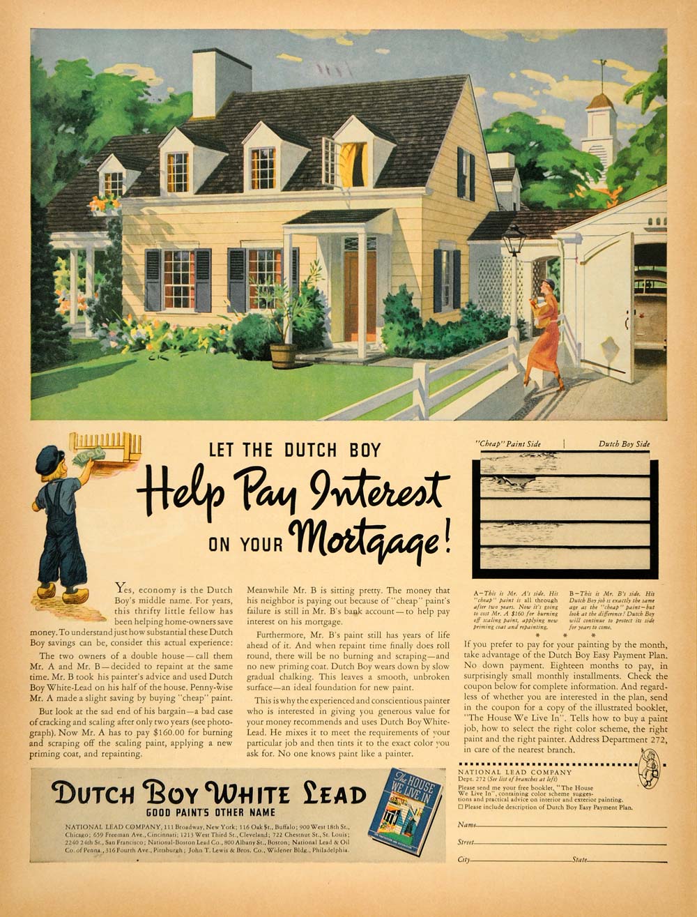 This is an original 1937 color print ad for Dutch Boy White Lead Paint from the National Lead Co. located in Broadway, New York.