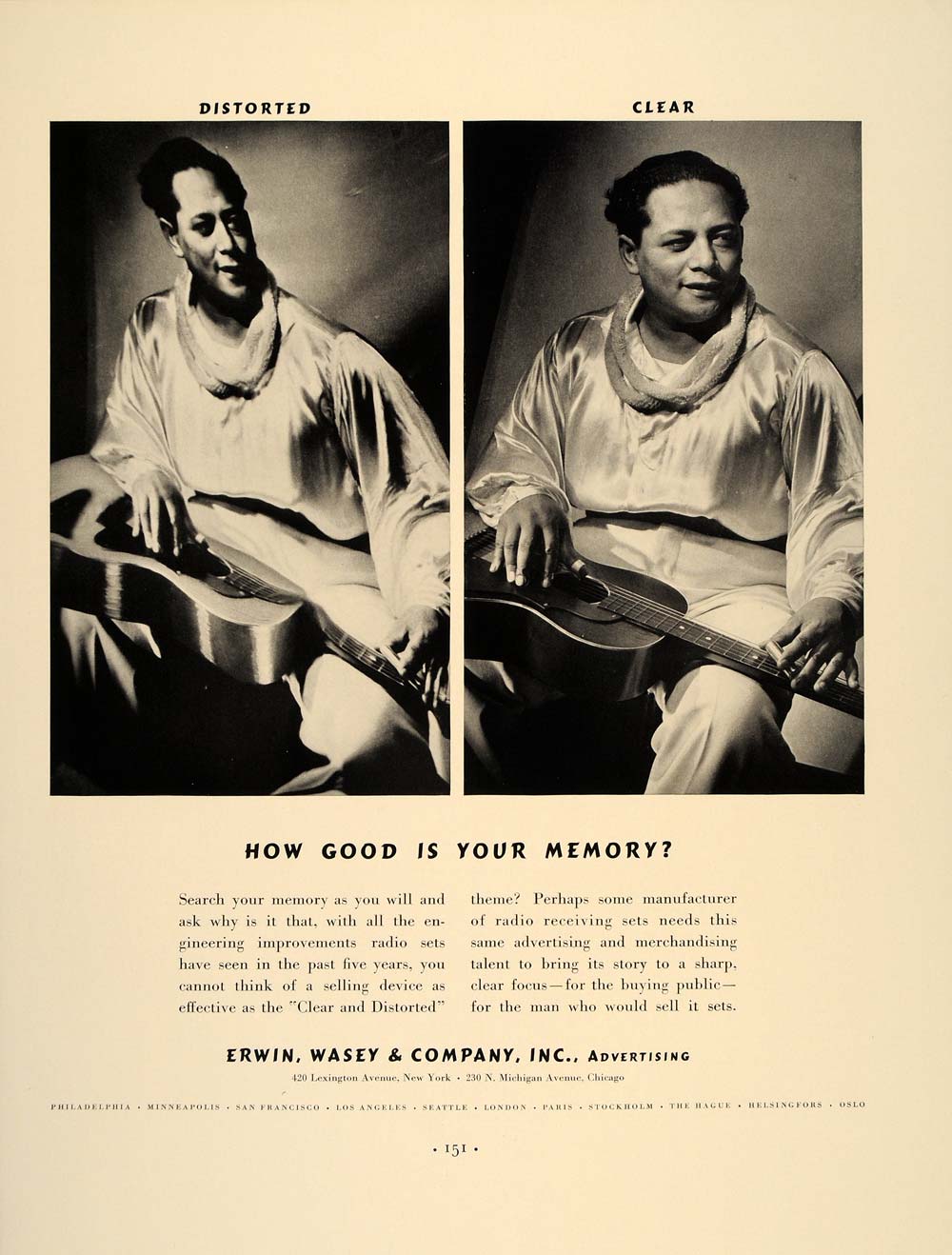 This is an original 1937 black and white print ad for the advertising agency of Erwin, Wasey & Company, Inc., 420 Lexington Ave., NYC.