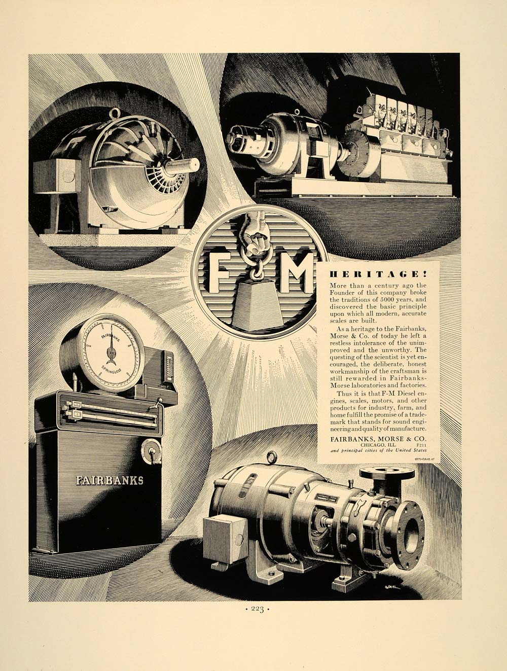 This is an original 1937 black and white print ad for Fairbanks, Morse & Co. of Chicago.