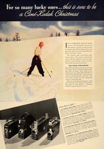 1937 Ad Full-Color Kodachrome Kodak Camera Snow Skiing - ORIGINAL ESQ1