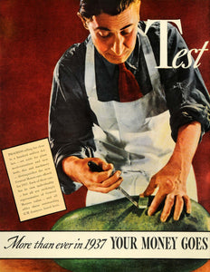 Keywords specific to this image: Chef, Watermelon, Apron Vintage Advertising