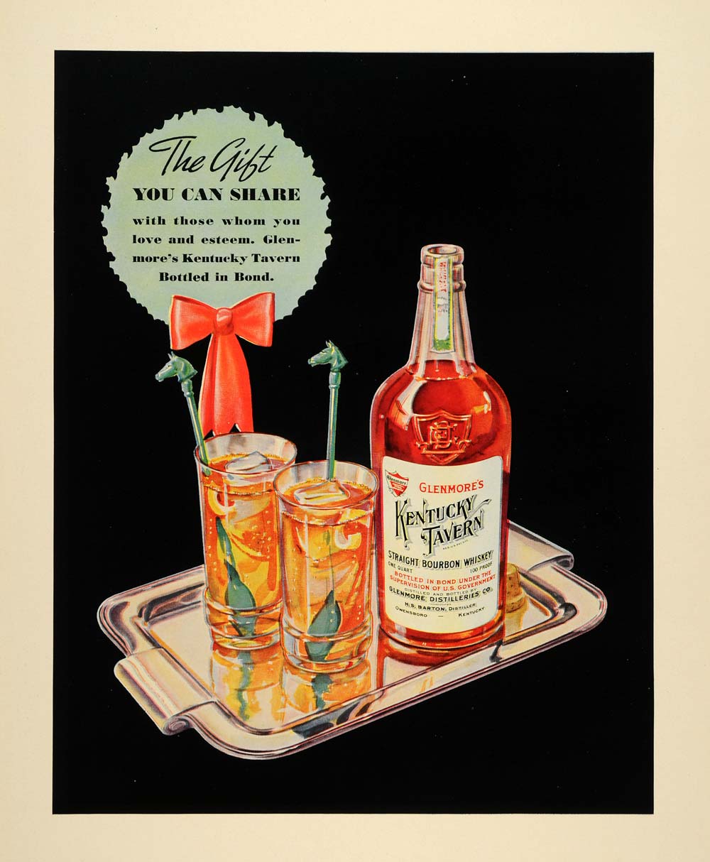 This is an original 1937 color print ad for Glenmore's Kentucky Tavern Bourbon Whiskey.