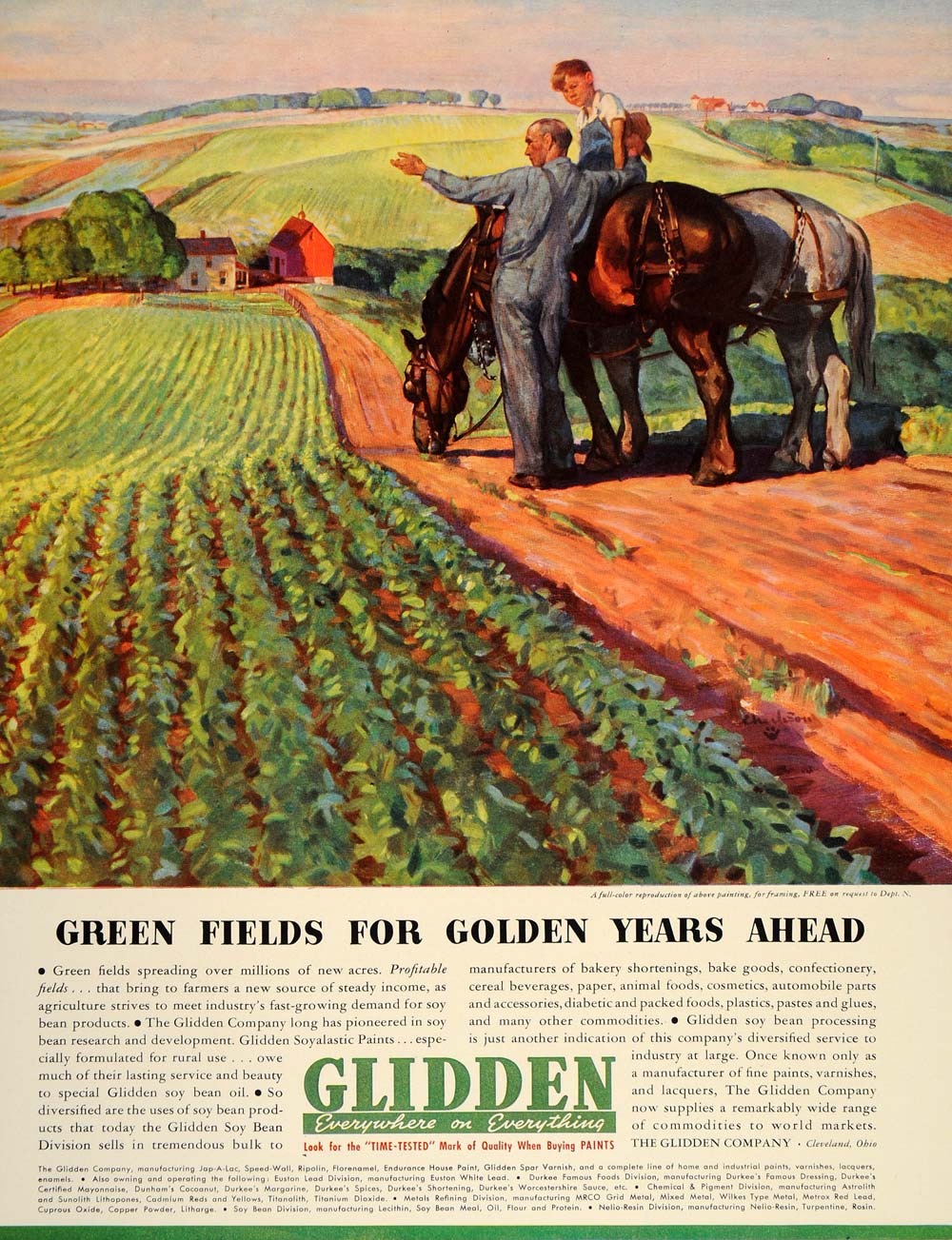 This is an original 1937 color print ad for the Soy Bean Division of The Glidden Company of Cleveland, Ohio.