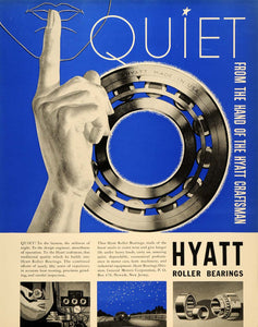 This is an original 1937 color print ad for Hyatt Roller Bearings.