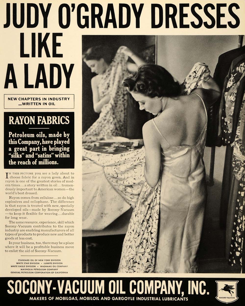 Keywords specific to this image: Celebrities, Dresses, Satin, American Women, Gowns, Fabrics Vintage Advertising