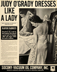 This is an original 1937 Great Depression Era black and white print ad for Socony-Vacuum Oil Company.