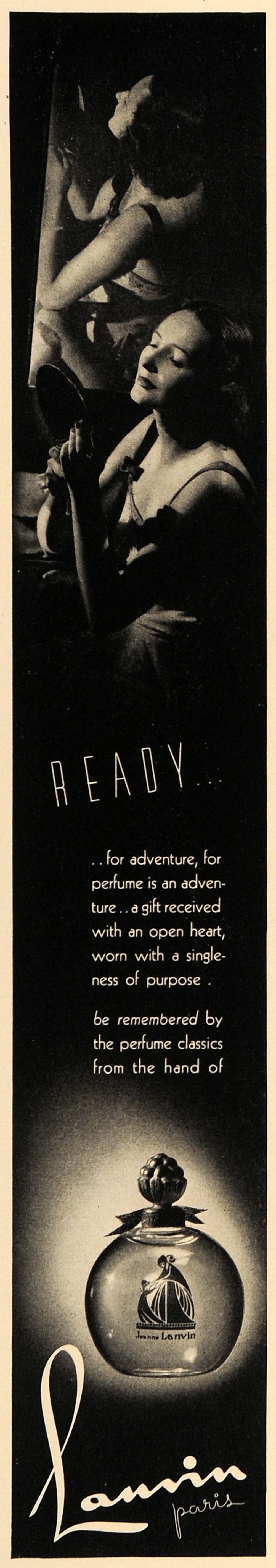 This is a small original 1937 black and white print ad for Lanvin Perfume from Paris.
