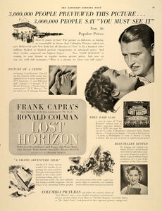 Keywords specific to this image: Ronald Colman, Edward Everett Horton, H. B. Warner, Jane Wyatt, Margo, John Howard, Isabel Jewell, Sam Jaffe, Thomas Mitchell, Robert Riskin Vintage Advertising