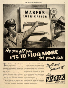 This is an original 1937 black and white print ad for Marfak Lubrication from Texaco.
