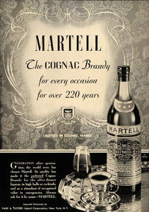 This is an original 1937 black and white print ad for Martell Cognac Brandy from the Park & Tilford Import Corp. located in New York.