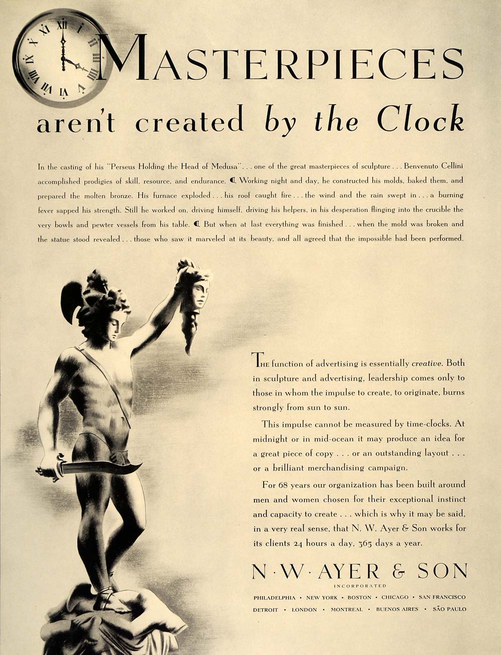 This is an original 1937 black and white print ad for the advertising agency of N. W. Ayer & Son, Inc.