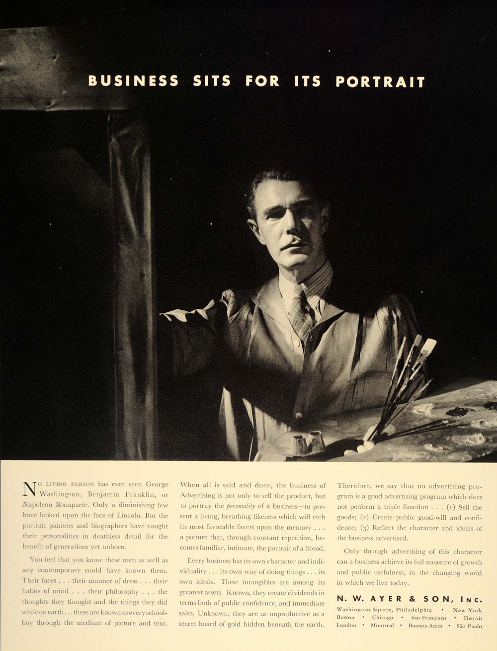 This is an original 1937 black and white print ad for the advertising agency of N. W. Ayer & Son, Inc.
