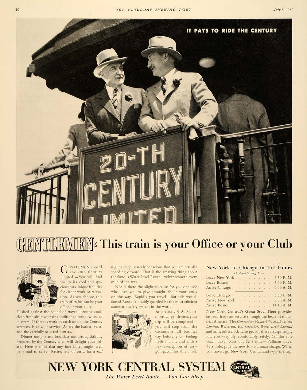 This is an original 1937 black and white print ad for New York Central System.