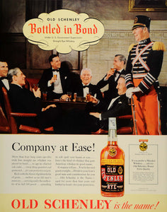 This is an original 1937 Great Depression Era color print ad for Old Schenley Straight Rye Whiskey.