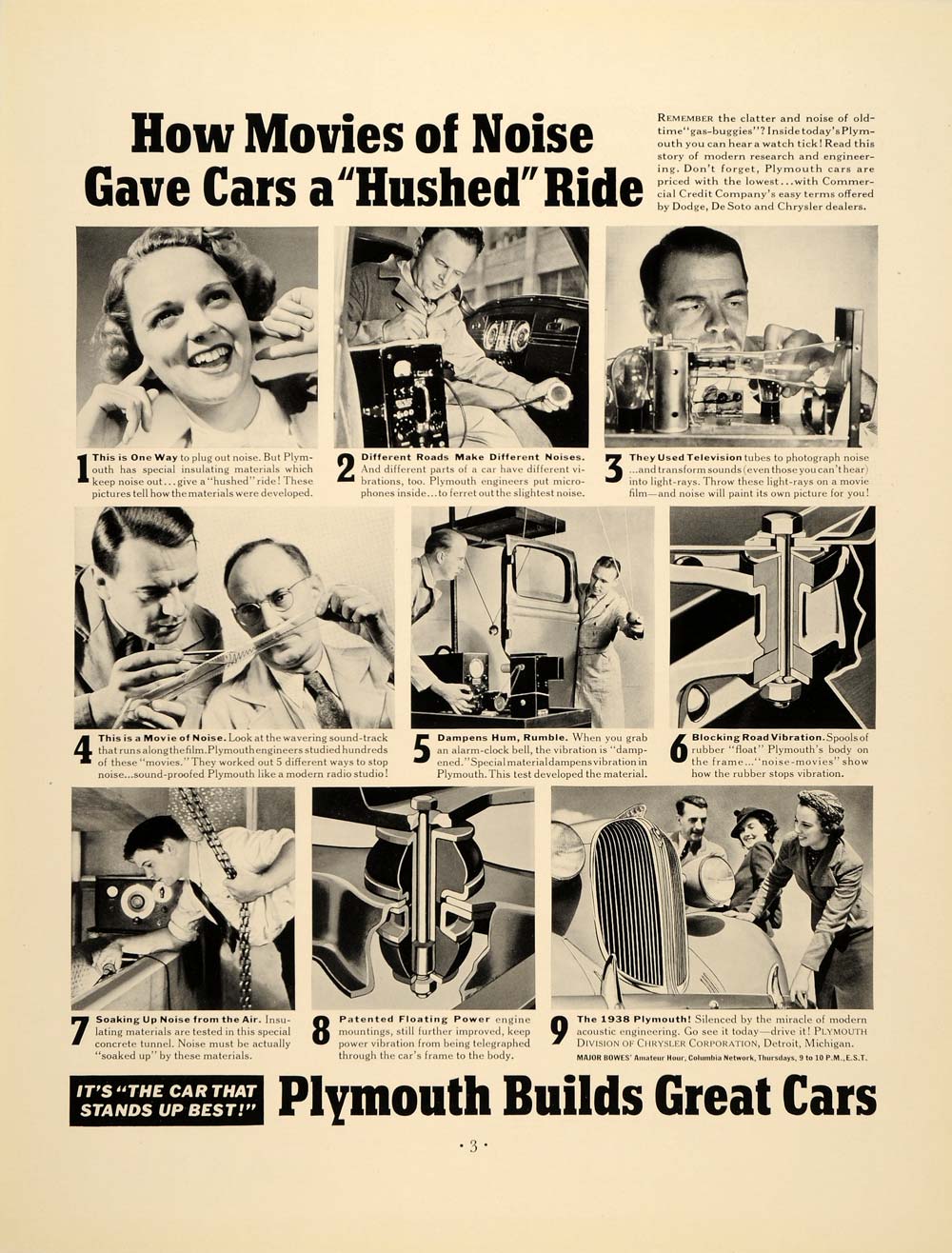 Keywords specific to this image: Major Bowes, Chrysler Corporation, Auto, Engine, Vehicle, Transportation, Engineers Vintage Advertising