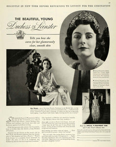 This is an original 1937 black and white print ad for Pond's Cold Cream, featuring the Duchess of Leinster.