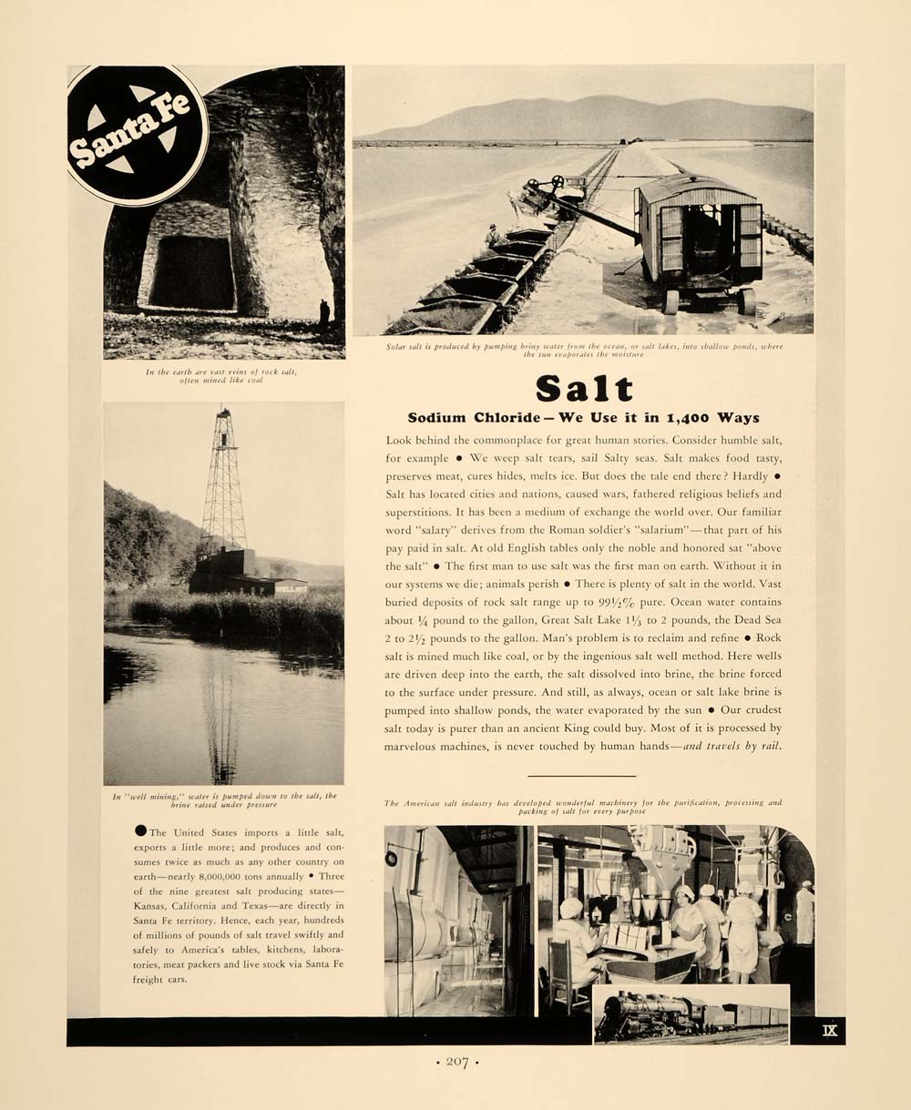 This is an original 1937 Great Depression Era black and white print ad for Santa Fe Salt.