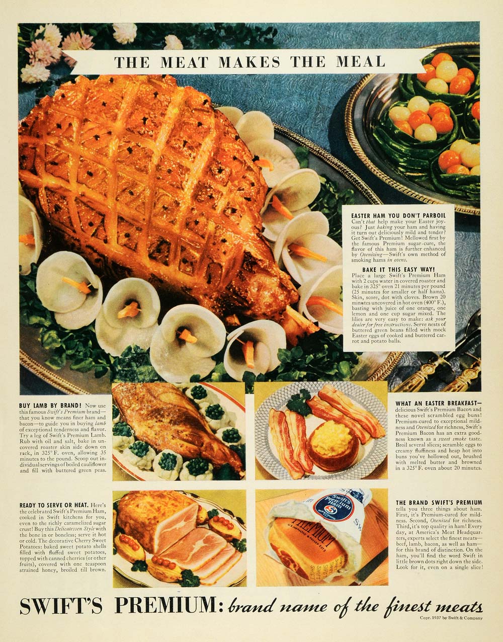 This is an original 1937 color print ad for Swift's Premium line of meats.
