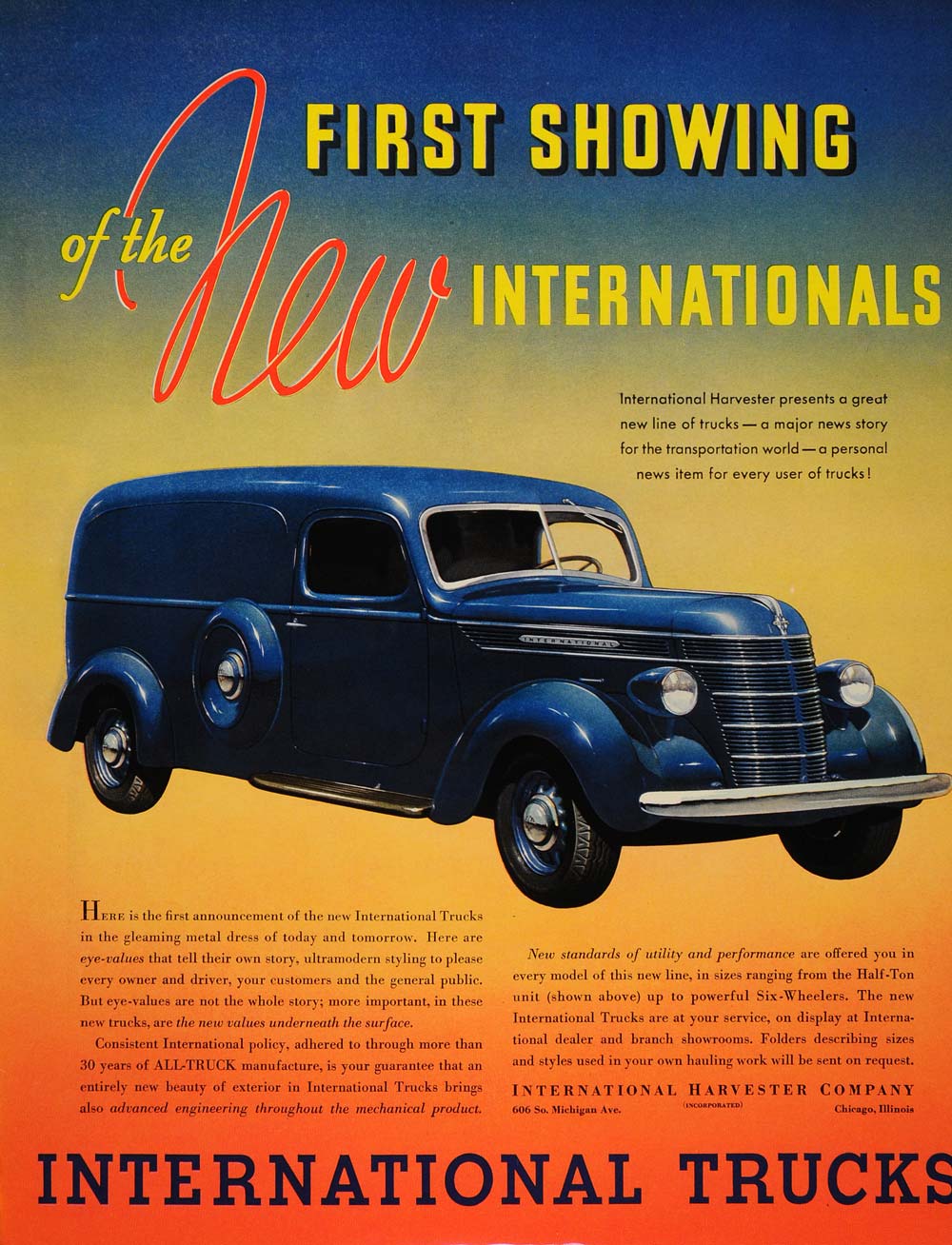 This is an original 1937 color print ad for International Trucks from the International Harvester Company.