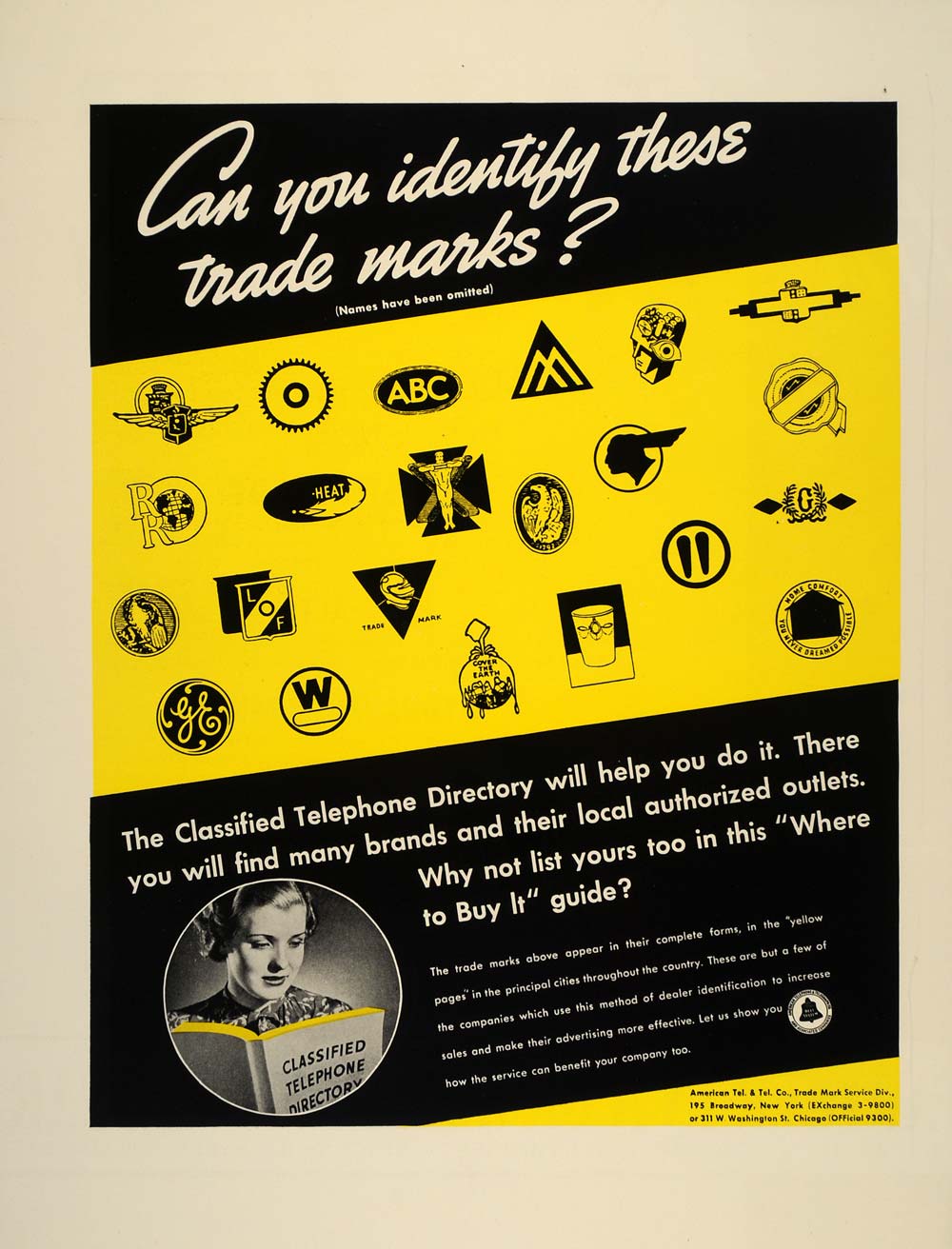 This is an original 1937 color print ad for the Classified Telephone Directory from the American Tel. & Tel. Co.