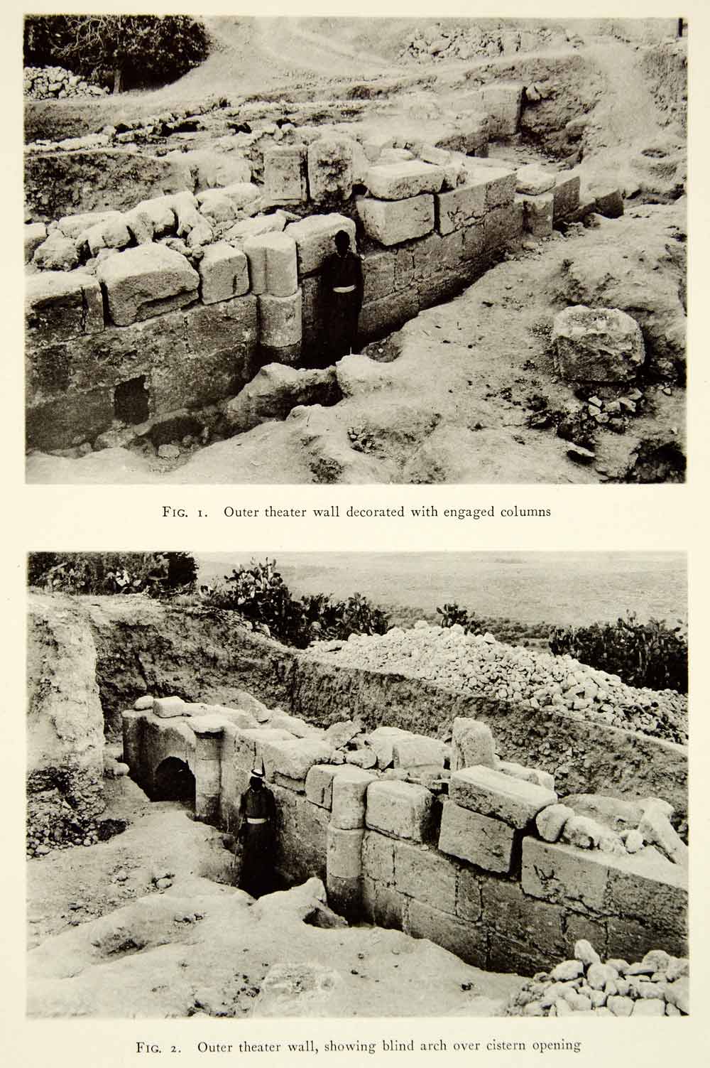 This is an original 1937 black and white collotype of the ruins of a theater which we believe is located in the city of Tzippori. This city is also known as Sepphoris, Dioceserea, and Saffuriya and is located in the central Galilee region of modern day Israel.