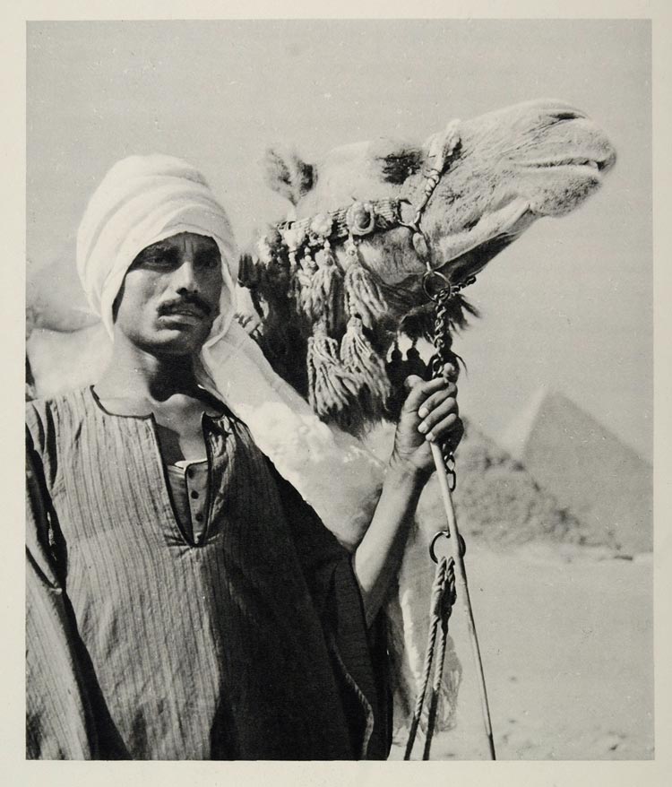 1937 Egyptian Man Camel Driver Pyramids Giza Egypt - ORIGINAL PHOTOGRAVURE MD1