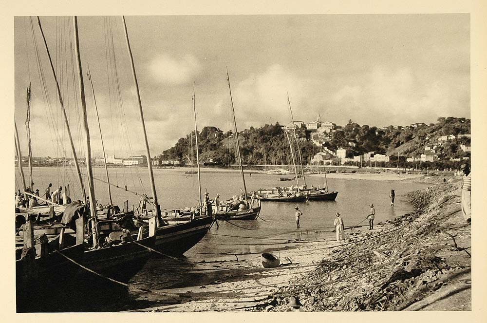1937 Fishing Boats Harbor Beach Salvador Bahia Brazil - ORIGINAL BZ1