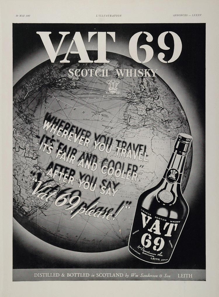 1937 Original Ad VAT 69 Scotch Whisky Whiskey Globe - ORIGINAL ADVERTISING