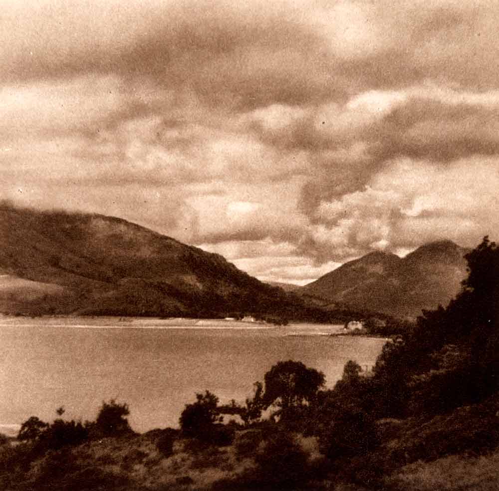 This is an original 1937 sepia photogravure of the Ballachulish Ferry Station in the Appin mountains from Wood of Lettermore where the Appin murder was committed. This event was written of in Robert Lewis Stevenson's