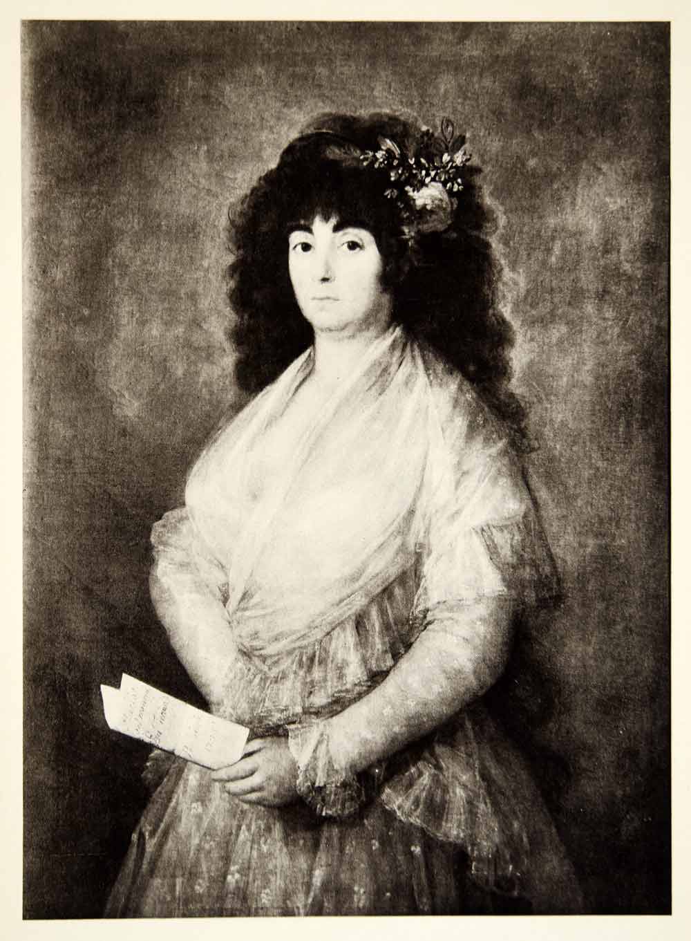 This is an original 1937 black and white photogravure of a Romanticism painting by Francisco Goya that portrayed Spanish actress, María del Rosario Fernández.
