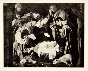 This is an original 1937 black and white photogravure of a Spanish Renaissance painting by José Sarabia that depicted the shepherds coming to worship at the birth of Jesus Christ in Bethlehem.