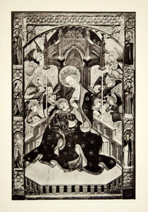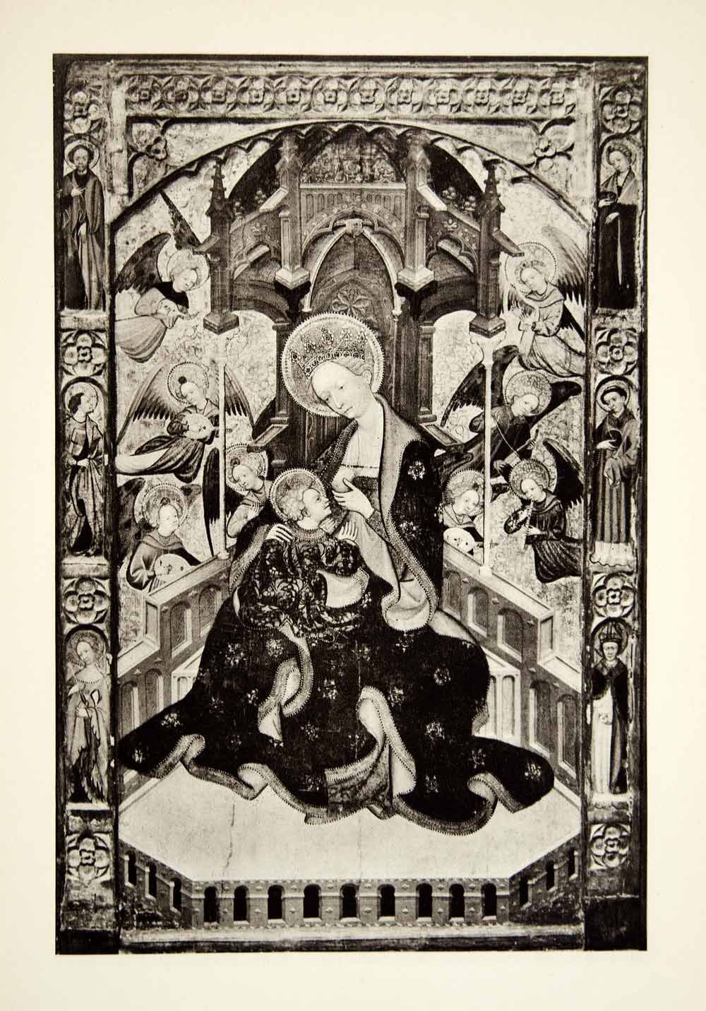 This is an original 1937 black and white photogravure of a Catalan style painting by an unknown artist that portrayed the Virgin Mary breast-feeding baby Jesus.