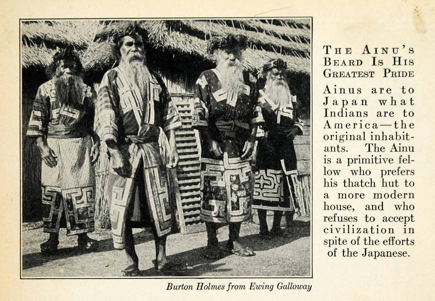 This is an original 1937 halftone print of four men of the Ainu (Aynu or Aino) people. The Ainu are the original inhabitants of Japan and officials estimate that there are around 25,000 Ainu in Japan. Photography courtesy of Burton Holmes.