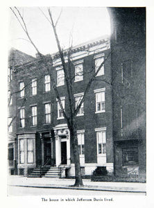 This is an original 1937 black and white halftone print of the place where Jefferson Davis died in Washington DC. Davis was an American statesman and leader of the confederacy during the American Civil War.