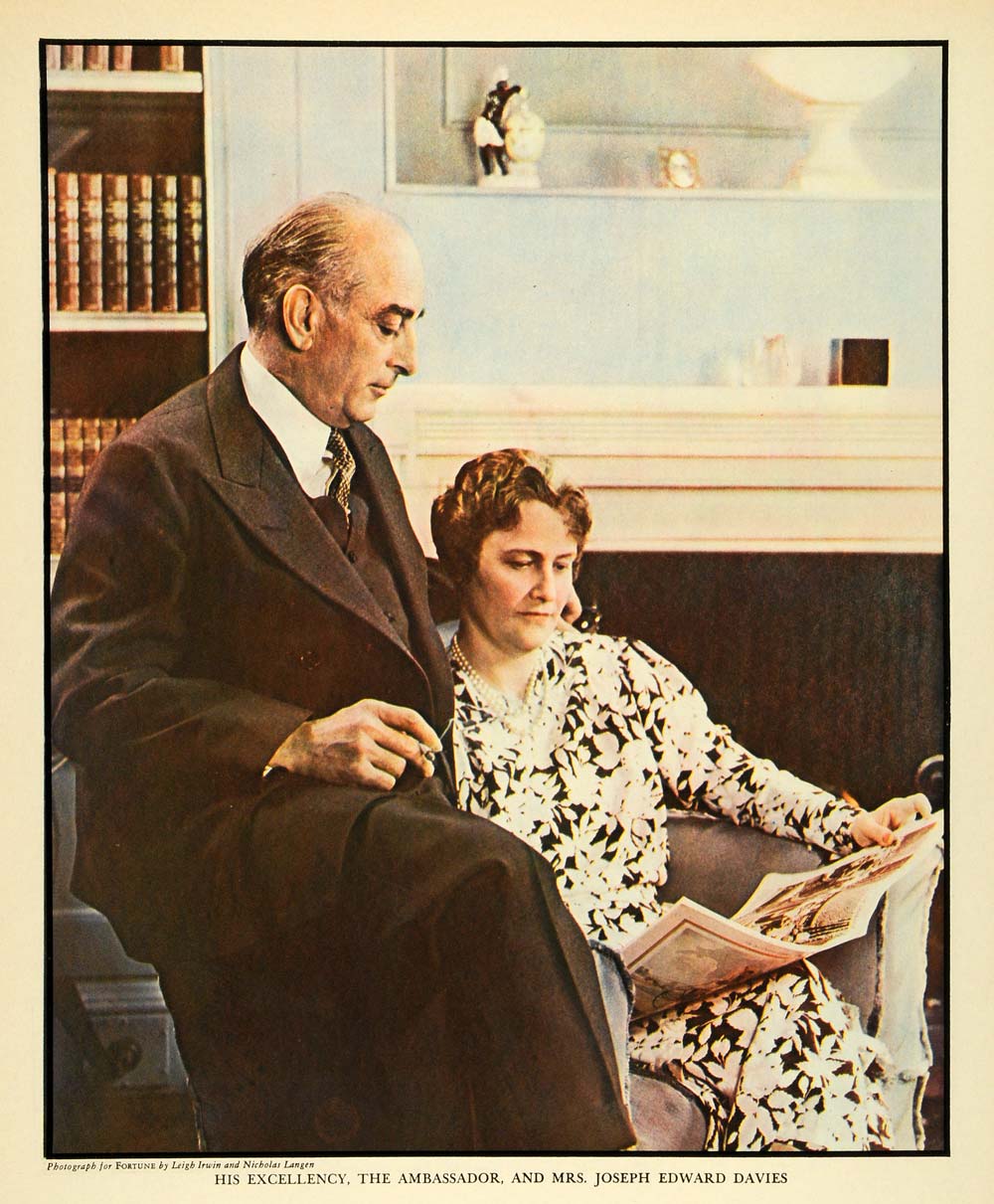 This is an original 1937 color print portrait of Joseph E. Davies and his wife. Davies was the second Ambassador in the Soviet Union for the United States, and also served as the United States Ambassador to both Luxembourg and Belgium. Photography by Leigh Irwin and Nicholas Langen.