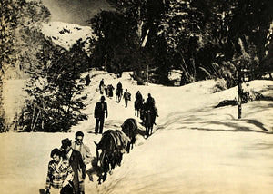 This is an original 1937 halftone print of tourists and horseback riders above the Lake of All Saints (Lake Todos los Santos) in Chile. The lake is located in southern Chile in the Los Lagos region inside of the Vicente Perez Rosales National park. President Theodore Roosevelt noted the region as having the most beautiful scenery on earth.