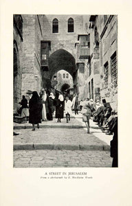 This is an original 1937 black and white halftone print of "A Street in Jerusalem," in Israel.