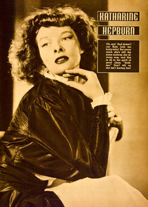 This is an original 1937 sepia rotogravure of iconic film legend Katharine Hepburn, Hollywood star and overall awe-inspiring hottie whose cinematic career spanned over 60 years.
