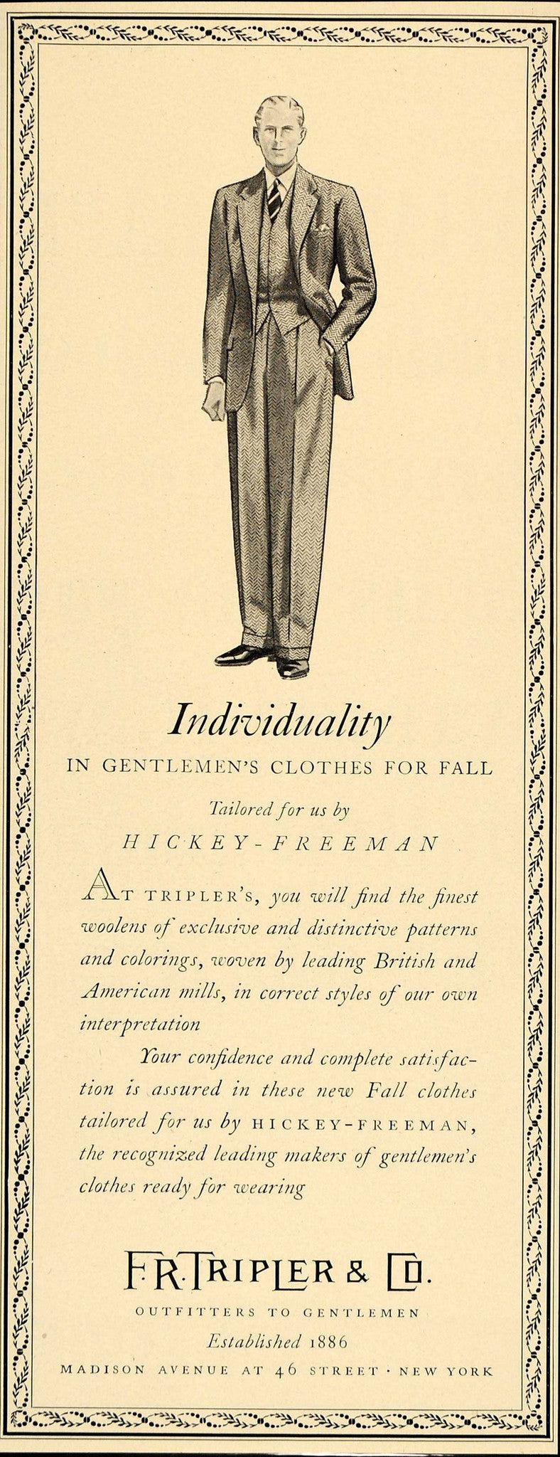 This is an original 1938 black and white print ad for F. R. Tripler and Company.