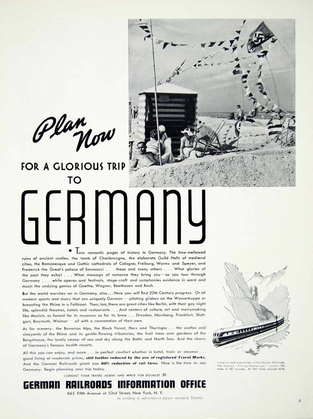 This is an original 1938 black and white print ad for the German railroads.