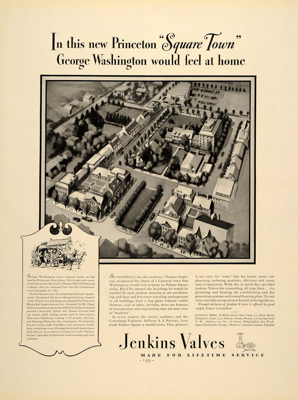 Keywords specific to this image: valves, Princeton, Thomas Stapleton, colonial town, Square town, Palmer Square, construction, enginiering, Sullivan A S Patorno, pipe lines, plumbing Vintage Advertising