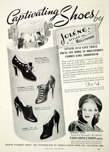 This is an original 1938 black and white print ad for Shoes by Joléne from Hollywood with Shirley Ross as the spokeswoman.