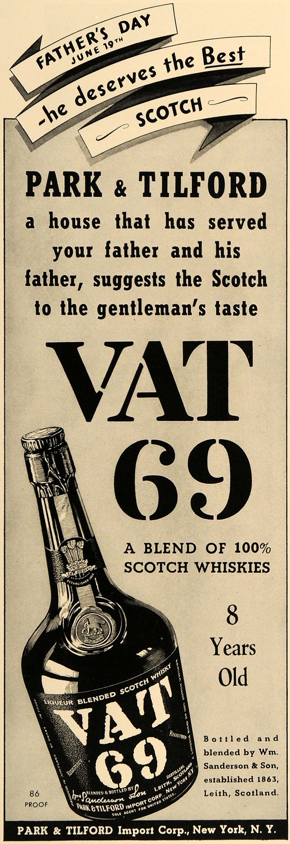 1938 Ad Park & Tilford Import Corp Vat 69 Scotch Whisky - ORIGINAL ESQ1