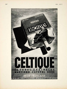 This is an original 1938 black and white French print ad for Celtique Cigarettes.
