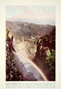 This is an original 1938 color print of a rainbow over the Rjukanfos, or Reeking Falls, found in Noway.